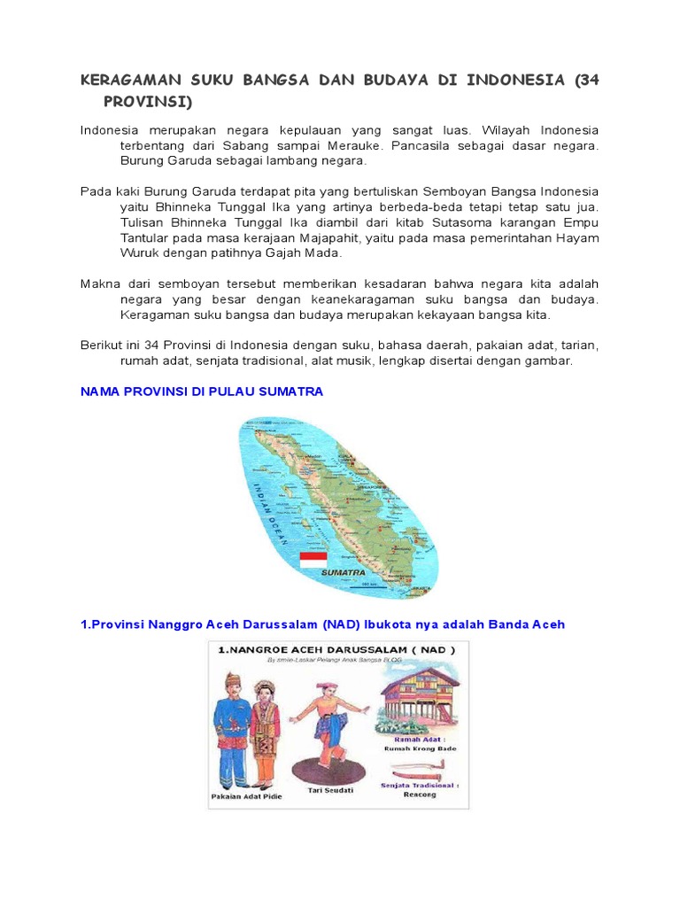Keragaman Suku Bangsa Dan Budaya Di Indonesia (34 Provinsi …