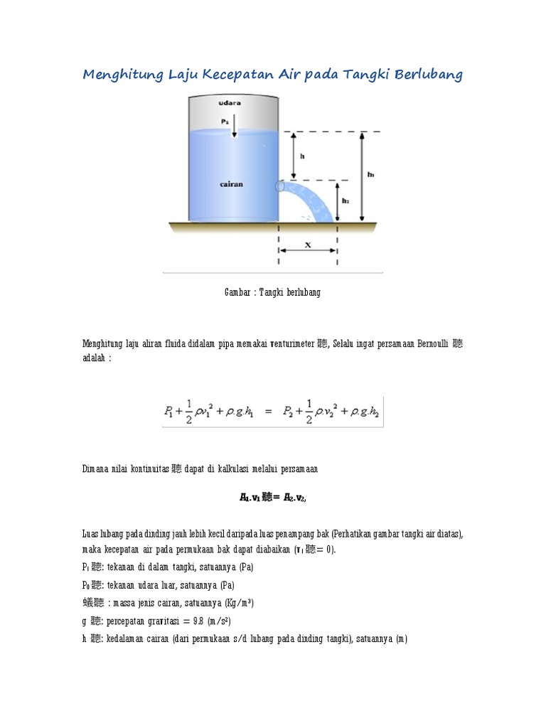 Menghitung Laju Kecepatan Air Pada Tangki Berluban