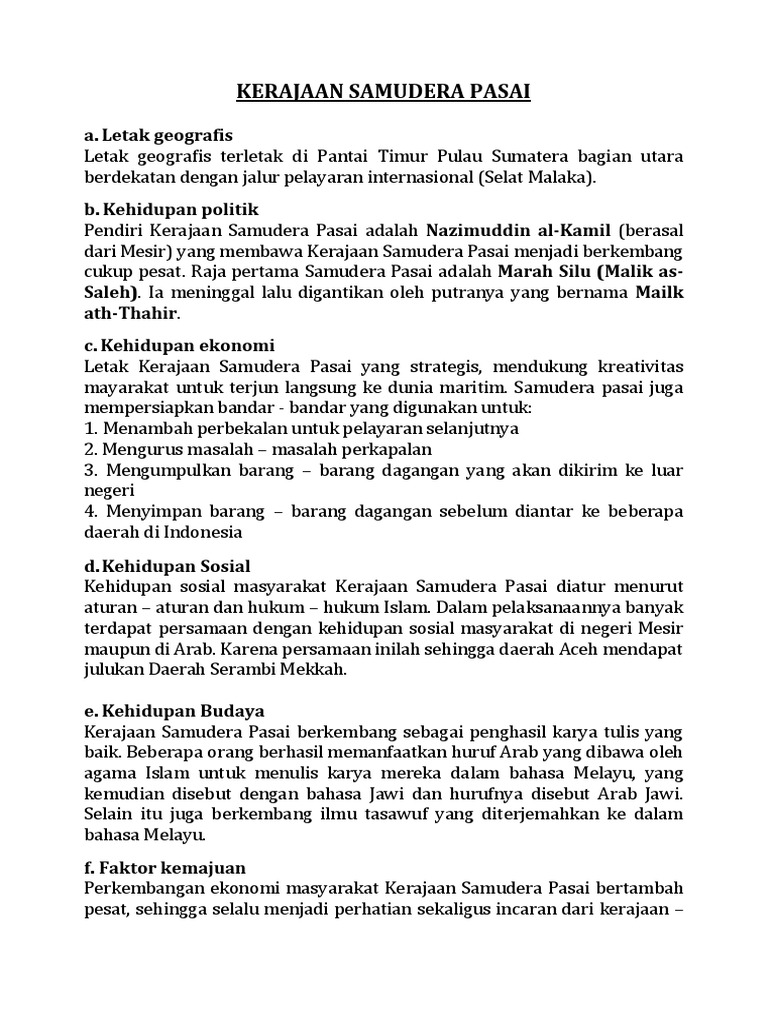 DOC) KERAJAAN SAMUDERA PASAI | Jesslyn L - Academia.edu