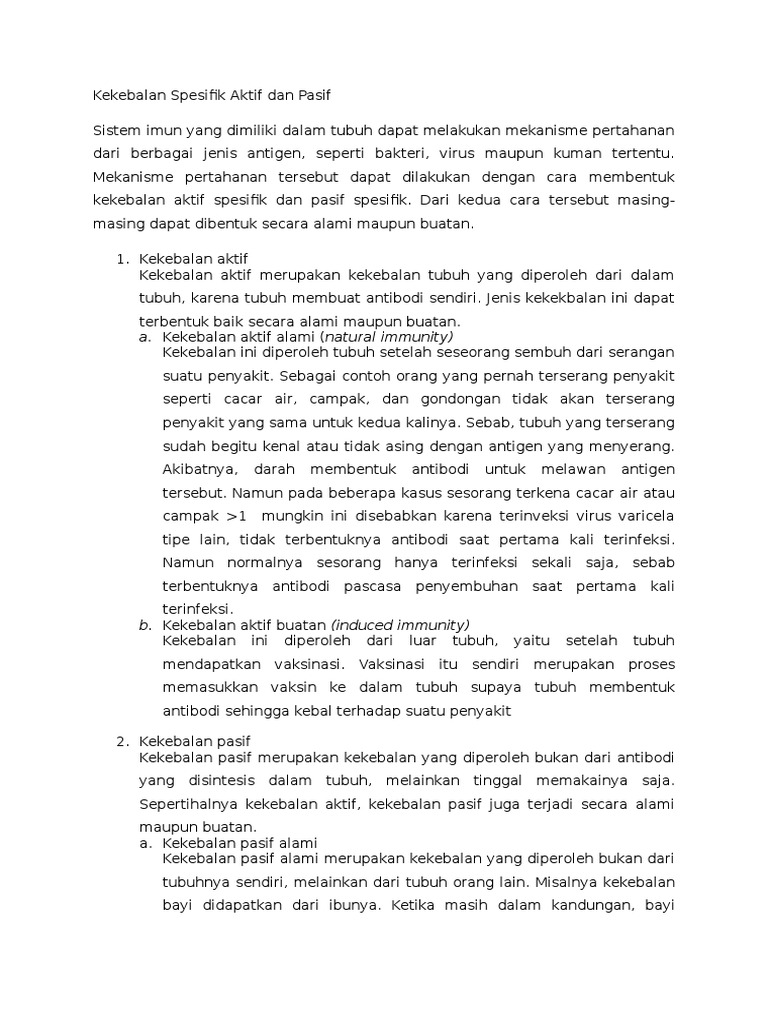 Kekebalan Spesifik Aktif Dan Pasif Fix