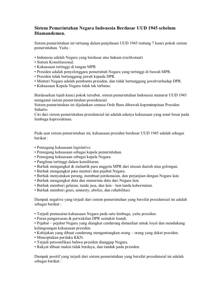 Sistem Ketatanegaraan Indonesia Sebelum Dan Sesudah Amandemen Uud 1945 - [DOCX Document]