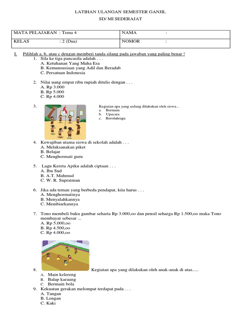 Soal Uas Tematik Kelas 2 Tema 4 Semester 1