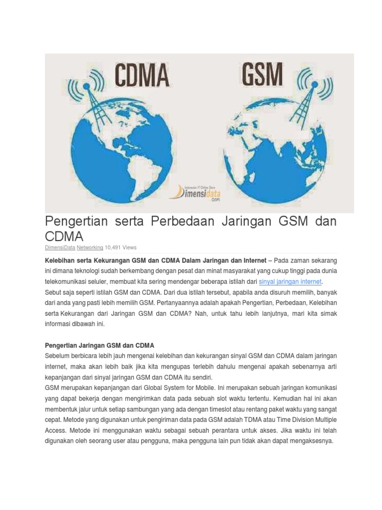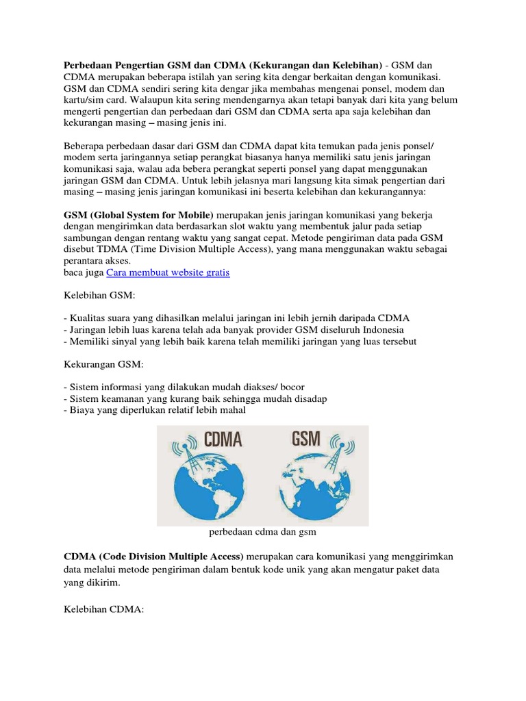 Jelaskan perbedaan kelebihan, dan kekurangan antara CDMA, dan GSM - Brainly.co.id