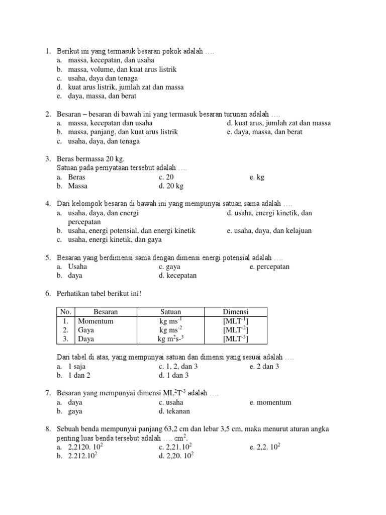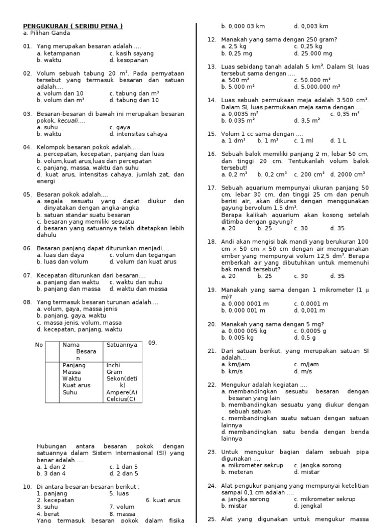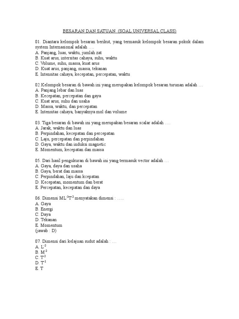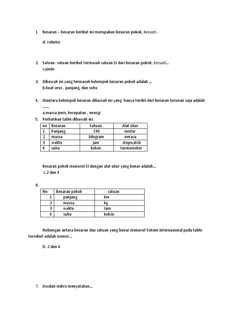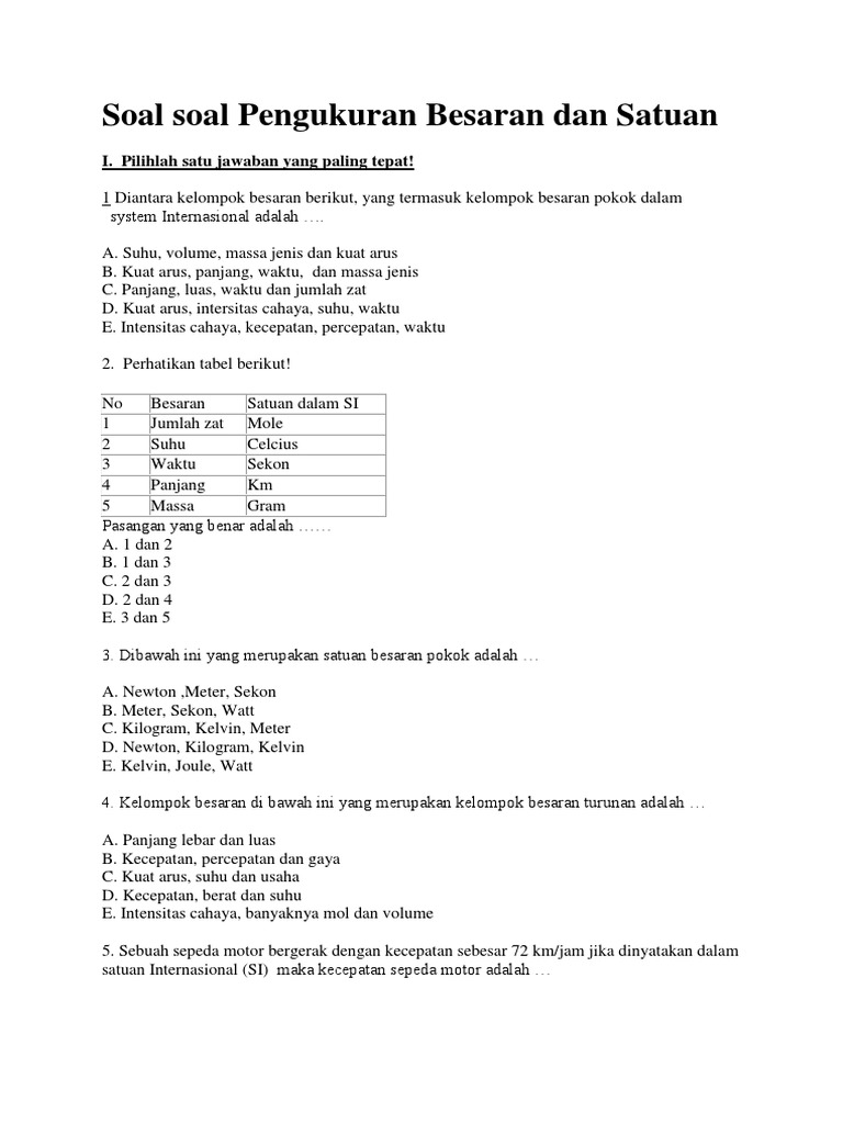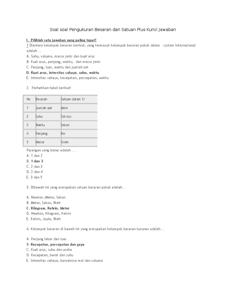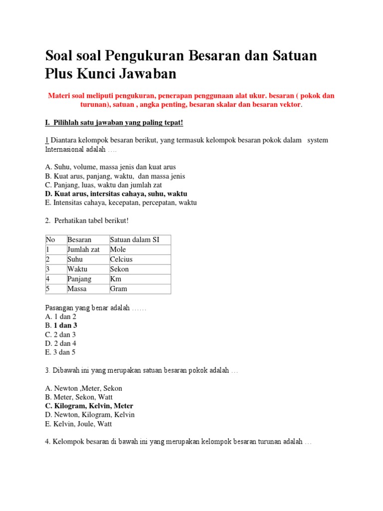 DOC) oal soal Pengukuran Besaran dan Satuan Plus Kunci Jawaban | Chul Reffaydệrs - Academia.edu