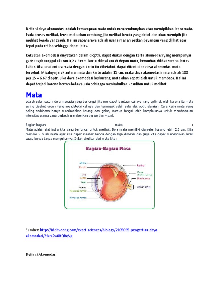Mata, Bagian Mata Dan Daya Akomodasi Mata