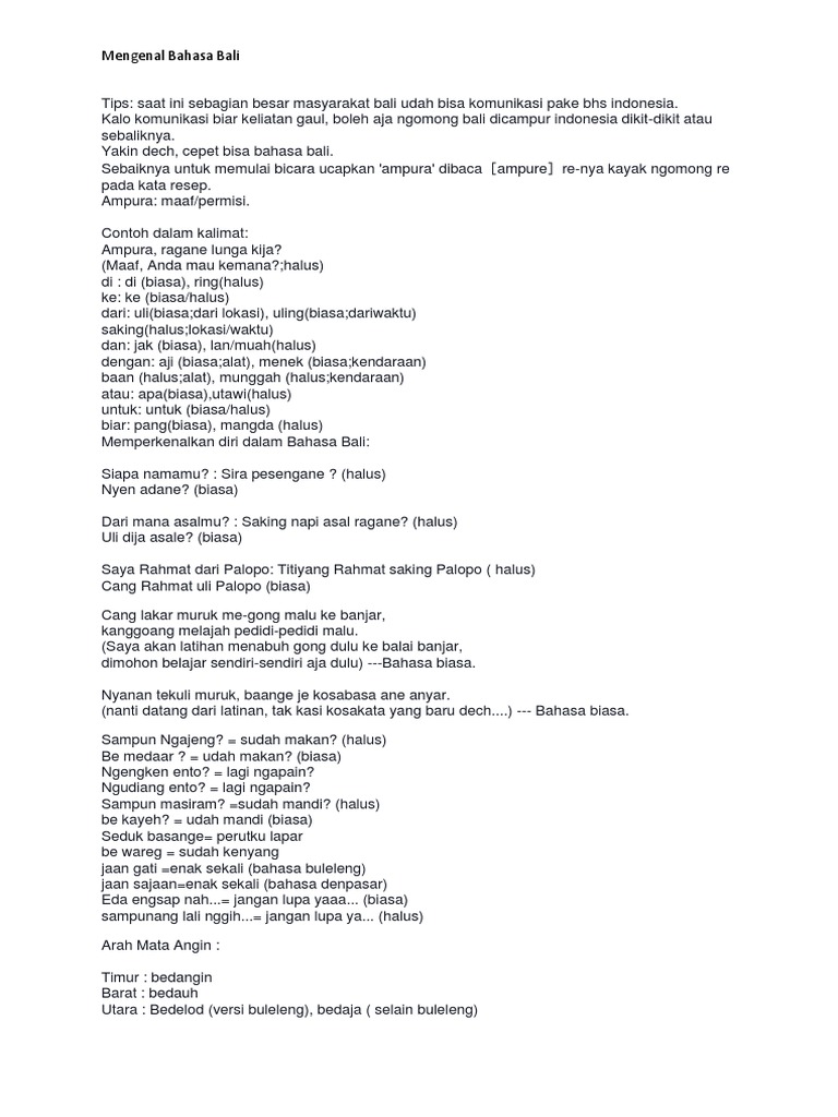 5 Bahasa Bali Yang Mirib Dengan Bahasa Indonesia | Belajar Bahasa …