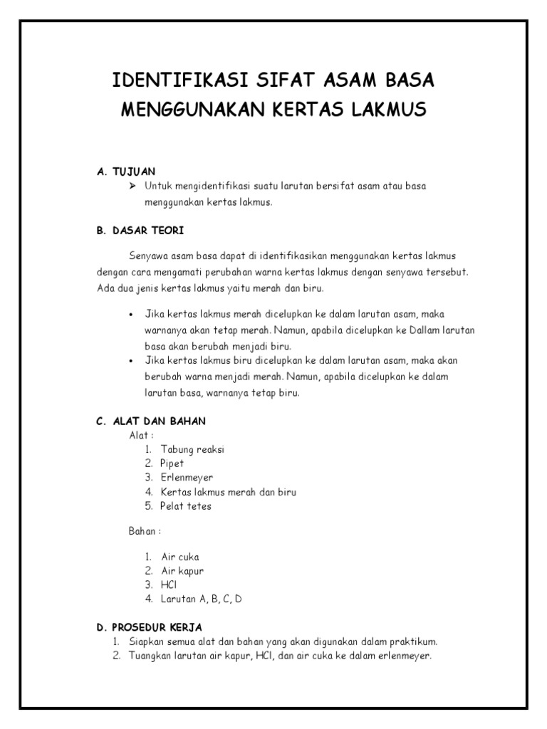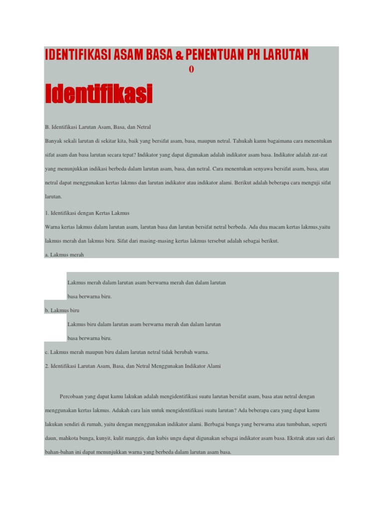Identifikasi: Identifikasi Asam Basa & Penentuan Ph Larutan