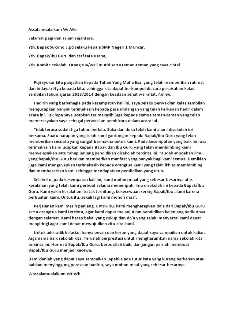 DOC) Nama: Cindy Oktaviani Kelas : IX-H Pidato Perpisahan Kelas IX …