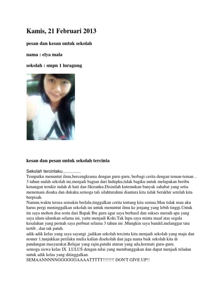 Kamis, 21 Februari 2013: pesan dan kesan untuk sekolah nama: elya …