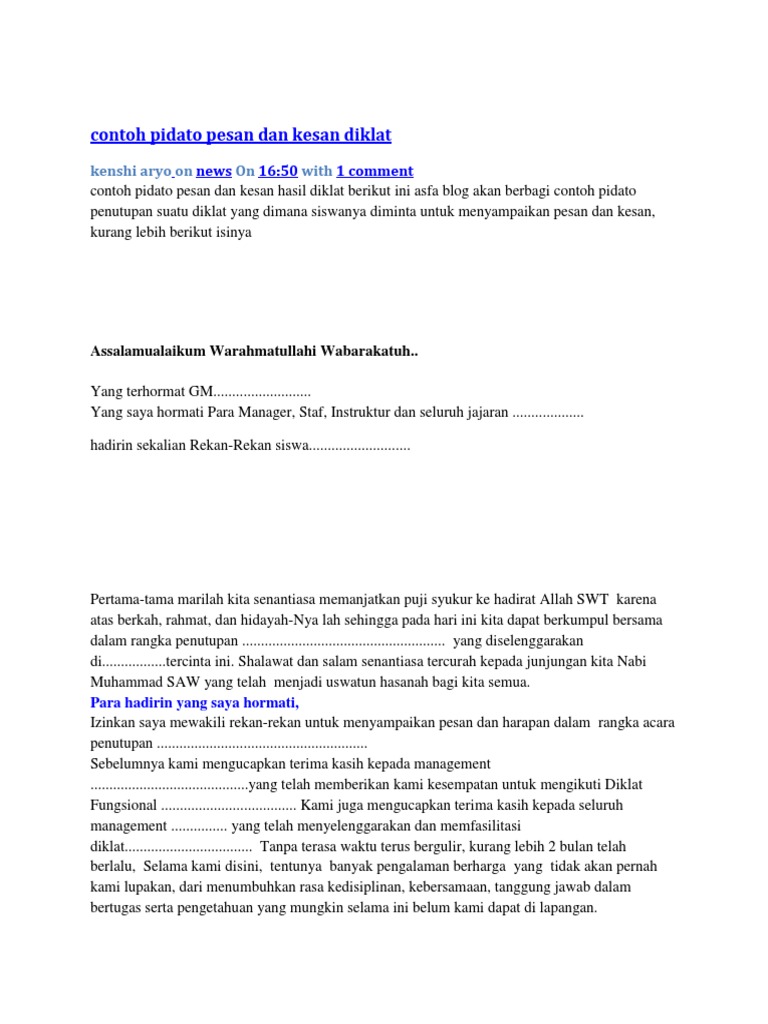 Contoh Pidato Pesan Dan Kesan Diklat