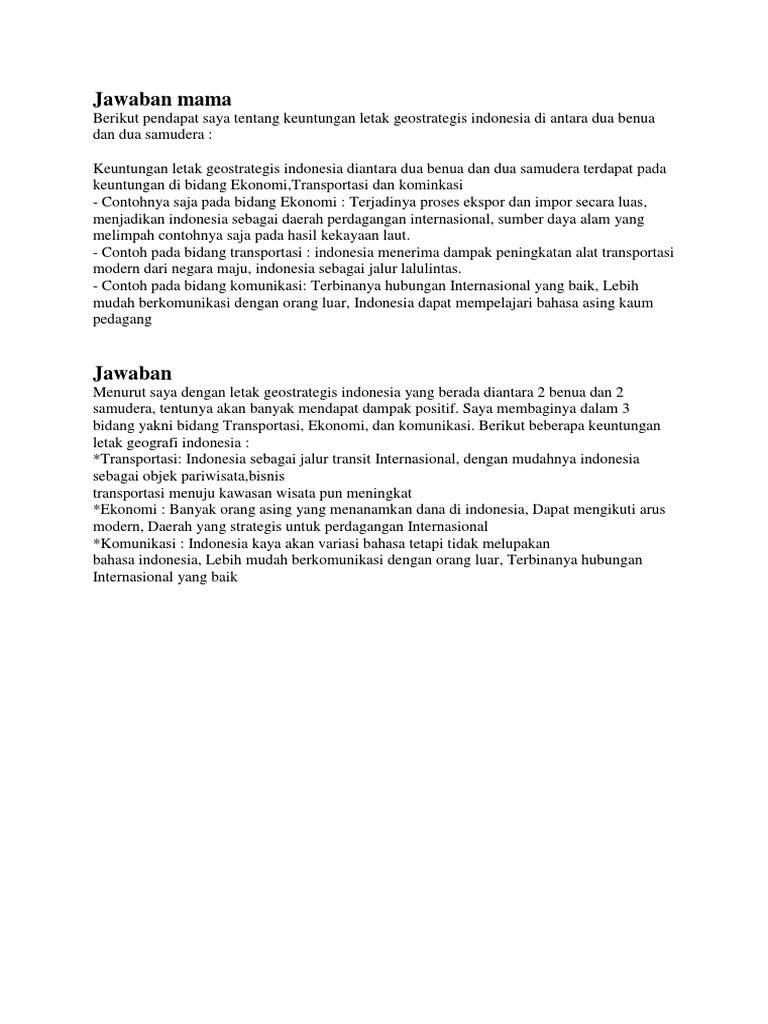 Sebutkan 4 keuntungan letak geostrategis Indonesia diantara dua …