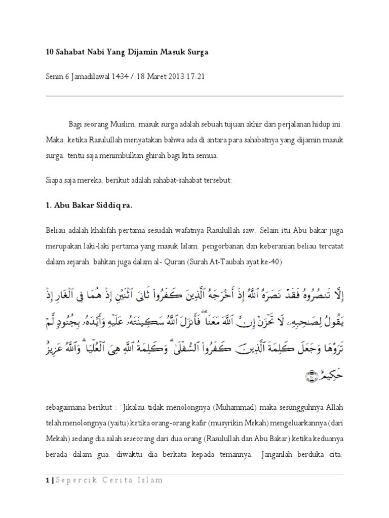 Nama-nama sahabat nabi yang paling pengaruh dalam Islam