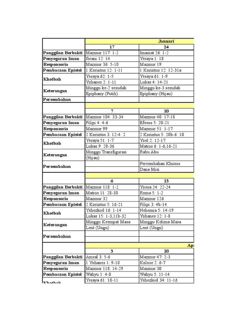 DAFTAR BACAAN ALKITAB GMIT Tahun 2017