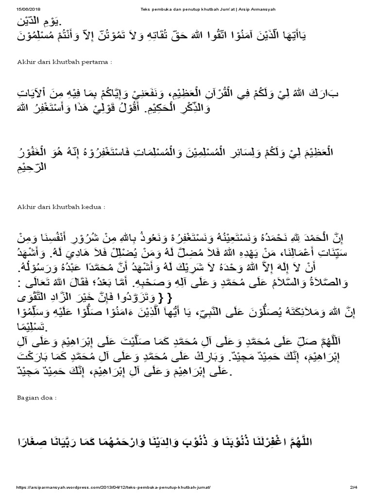 Teks Pembuka Dan Penutup Khutbah Jum’at _ Arsip Armansyah