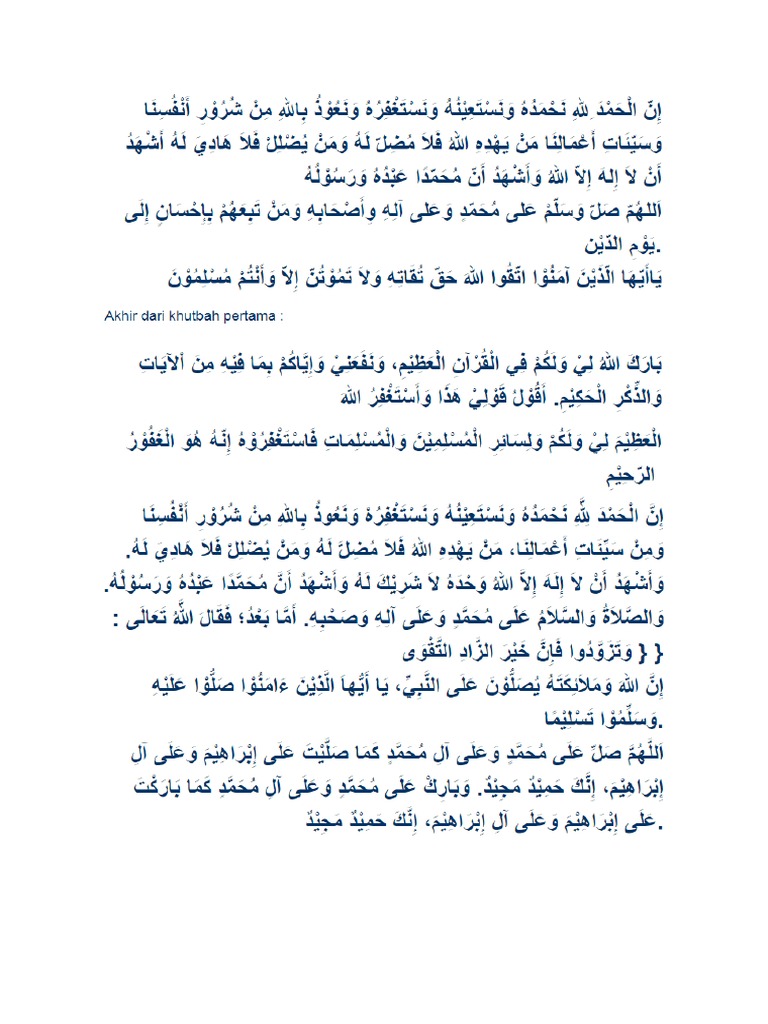 Bacaan Khutbah Jum’at ( Tulisan Arab )