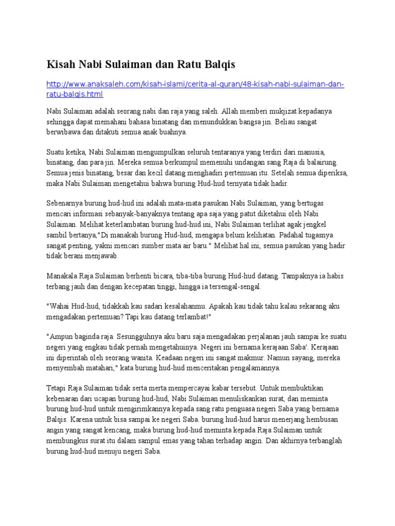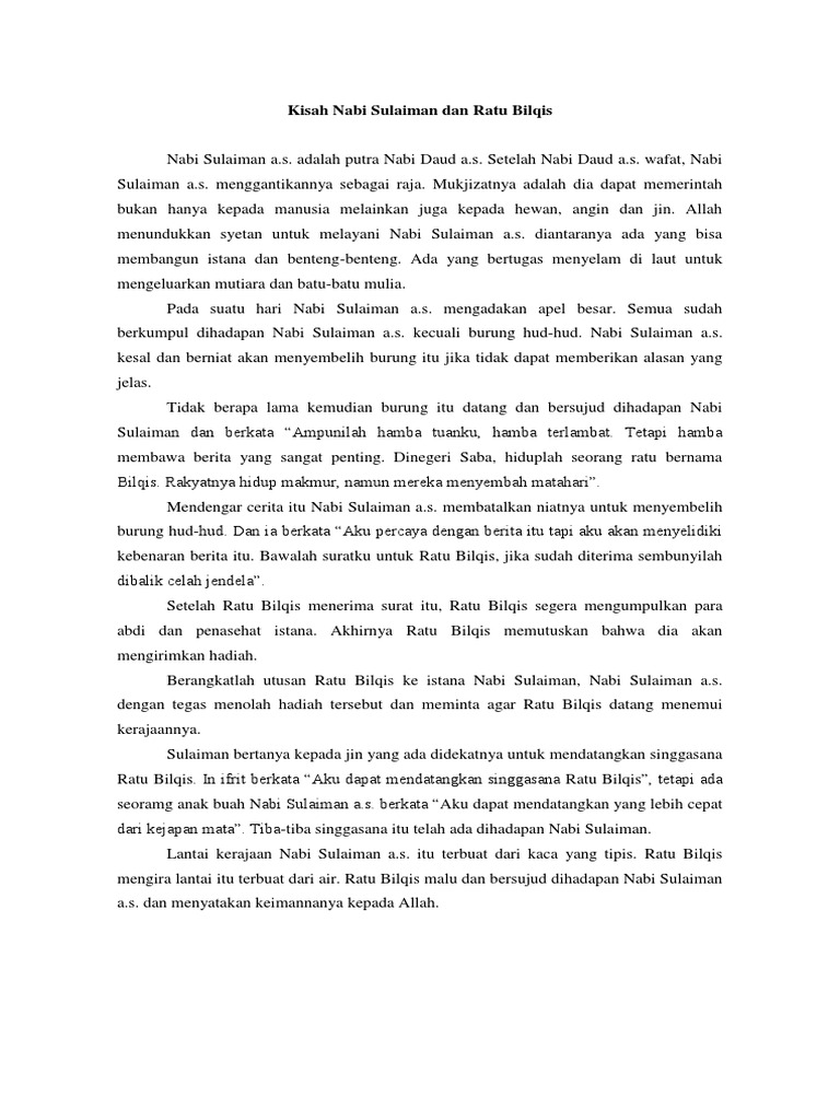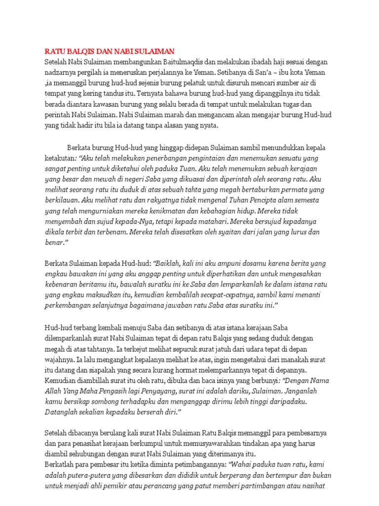 Kisah Nabi Sulaiman dan Ratu Balqis dalam Al quran Merupakan Edisi …