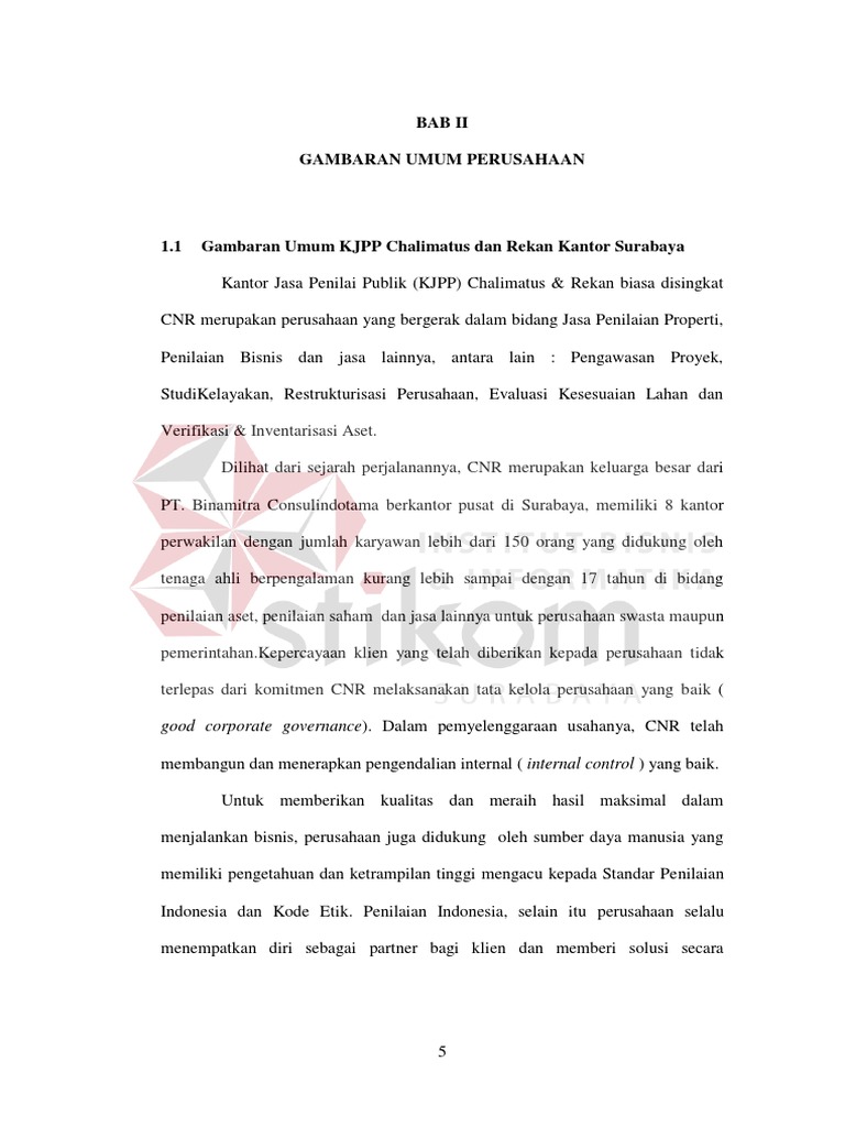 BAB II GAMBARAN UMUM PERUSAHAAN. 1.1 Gambaran Umum KJPP Chalimatus …