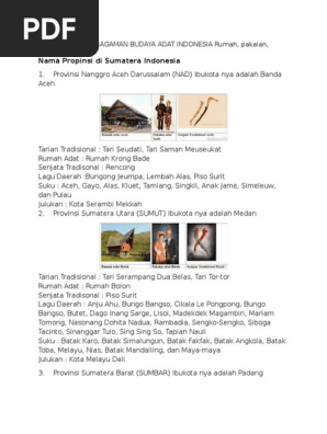 34 Provinsi Rumah adat Pakaian Tarian Tradisional Senjata …