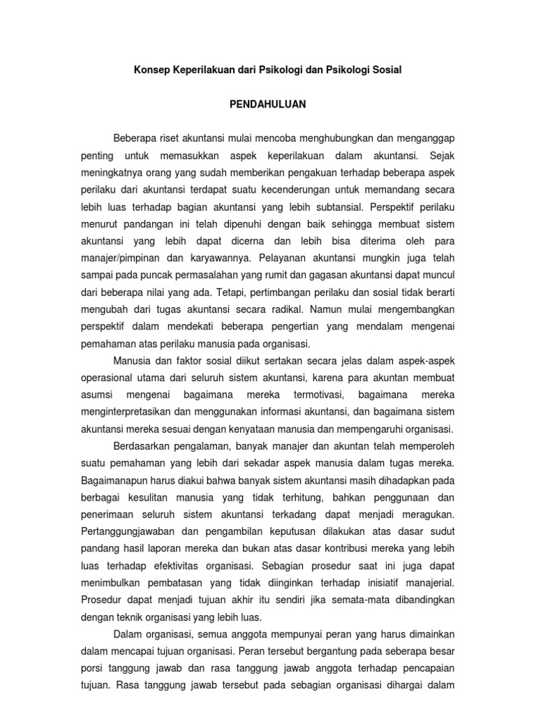 Makalah Konsep Keperilakuan Dari Psikologi Dan Psikologi Sosial …