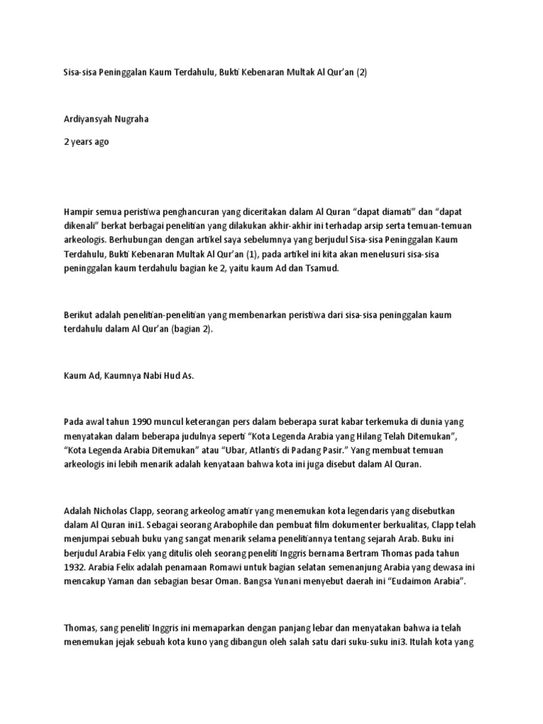테마 - PENEMUAN KOTA KAUM A’AD MEMBUKTIKAN KEMUKJIZADAN ALQURAN Satu ketika dahulu, ramai ragu-ragu tentang kewujudan kaum A’ad seperti yang termaktub dalam al-Quran. Ketika ayat mengenai kehancuran kaum A’ad diturunkan, ramai terkejut