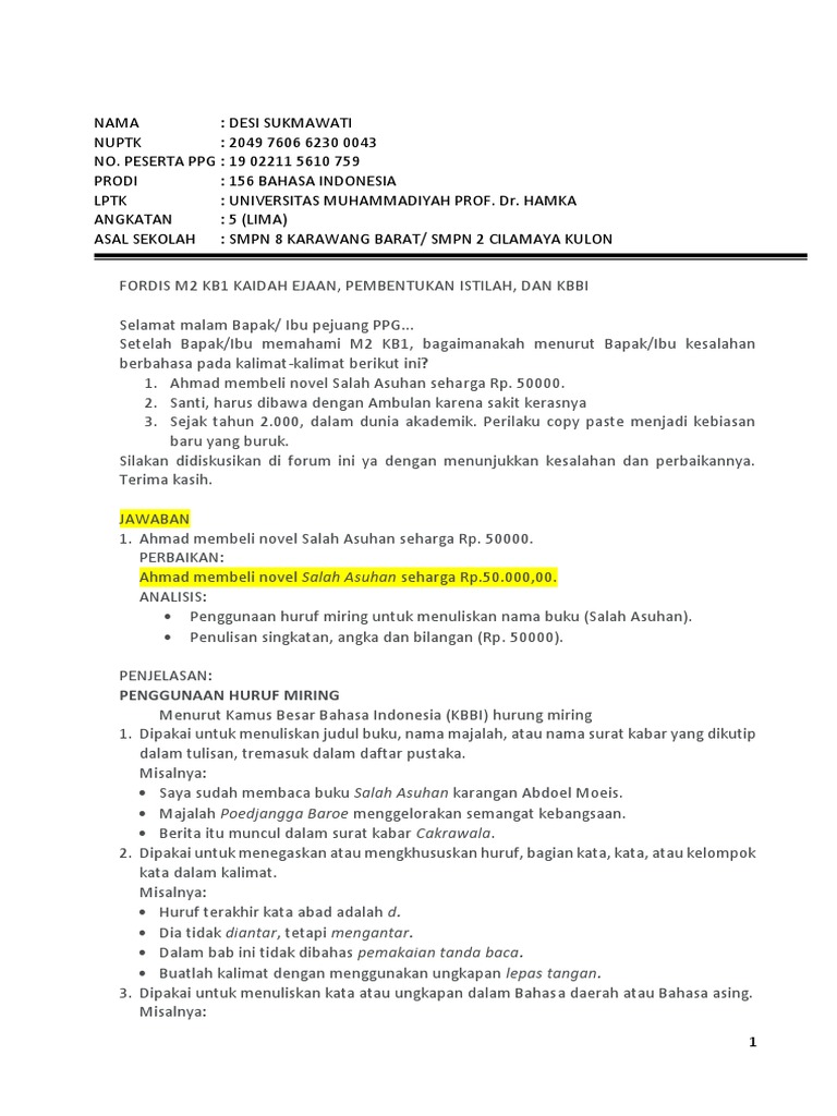 Fordis m2 Kb1 Kaidah Ejaan, Pembentukan Isilah, Dan Kbbi