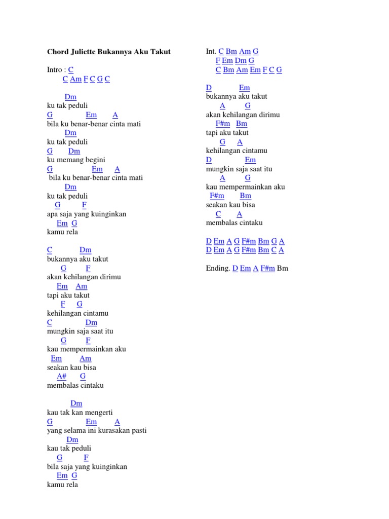 Chord Juliette Bukannya Aku Takut - Chord Gitar Indonesia …