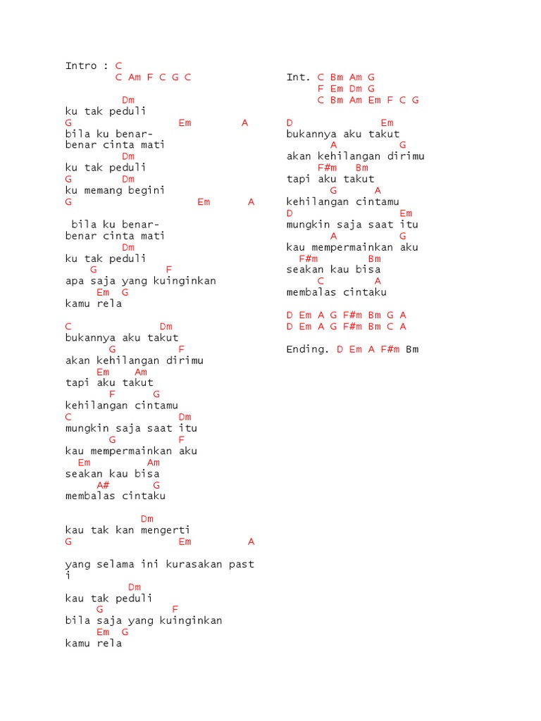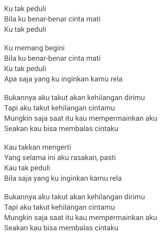 Ku Tak Peduli Bila Ku Benar Benar Cinta