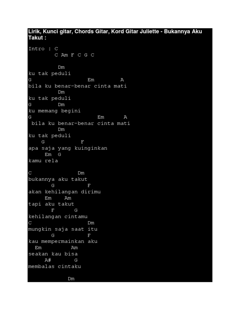 Chord Kunci Gitar Bukannya Aku Takut - Juliette, Lirik Lagu: Ku …