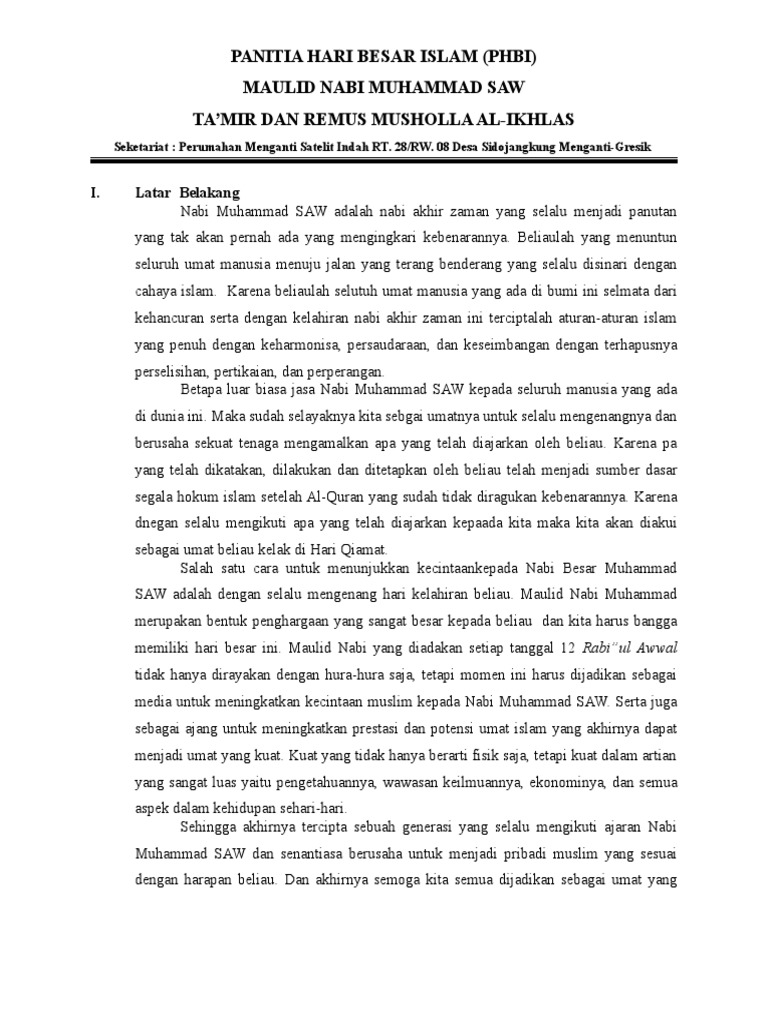 DOC) CONTOH PROPOSAL KEGIATAN PERINGATAN MAULID NABI MUHAMMAD SAW …