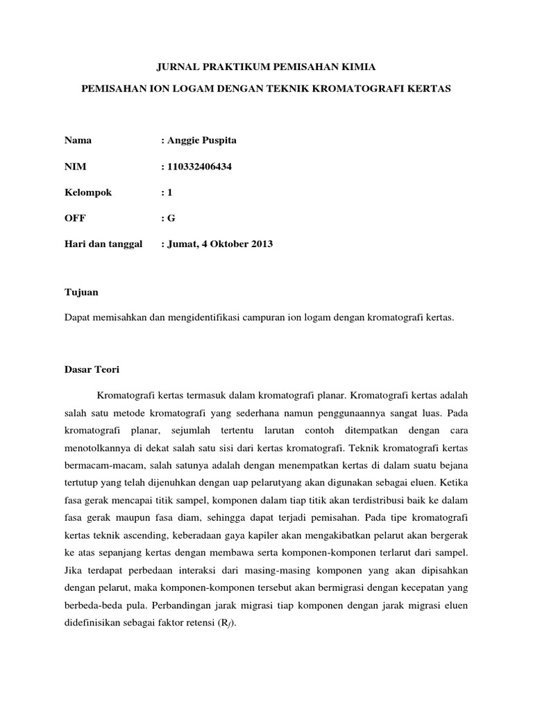 DOC) laporan pratikum KROMATOGRAFI KOLOM | Erli Fharida - Academia.edu
