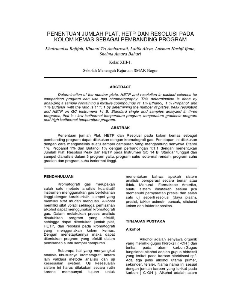 DOC) KROMATOGRAFI KOLOM KONVENSIONAL | nina sakina - Academia.edu