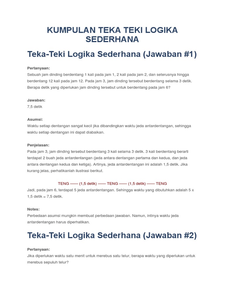 Kumpulan Soal Teka Teki Logika Lengkap Dengan Jawabannya | MUDA …