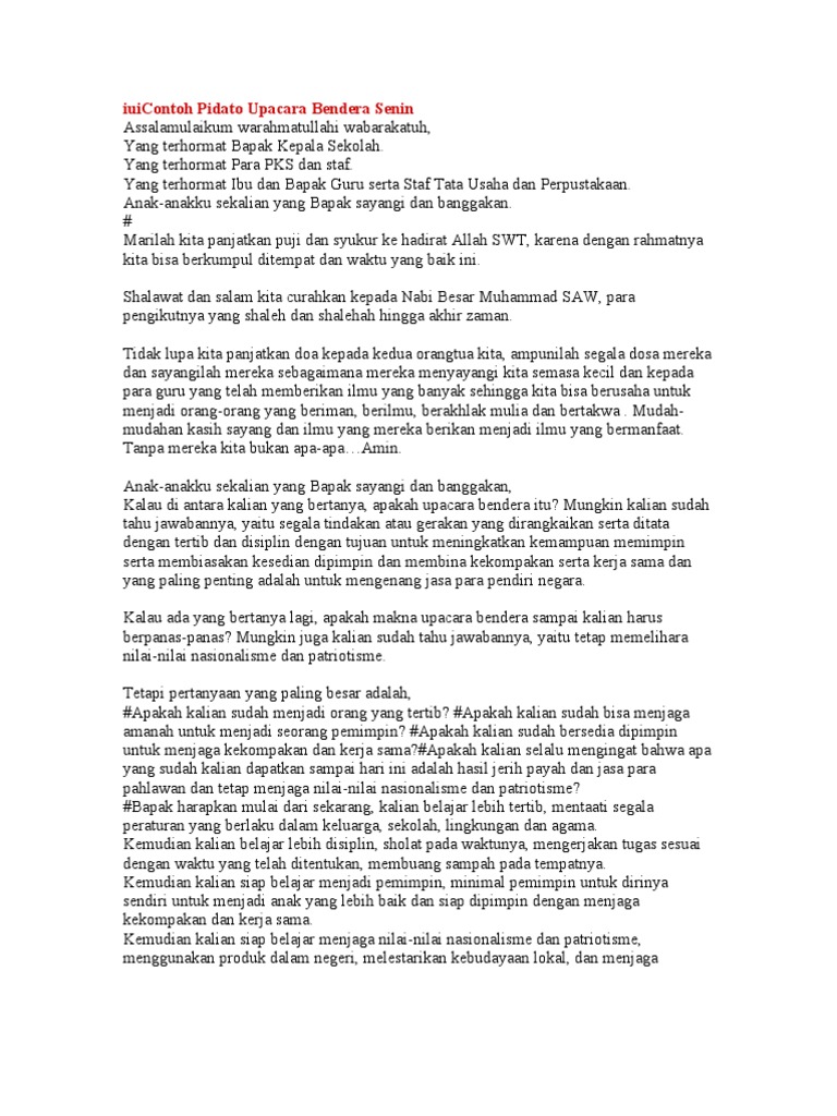 Top PDF Contoh Pidato Amanat Pembina Upacara Hari Senin Tentang …