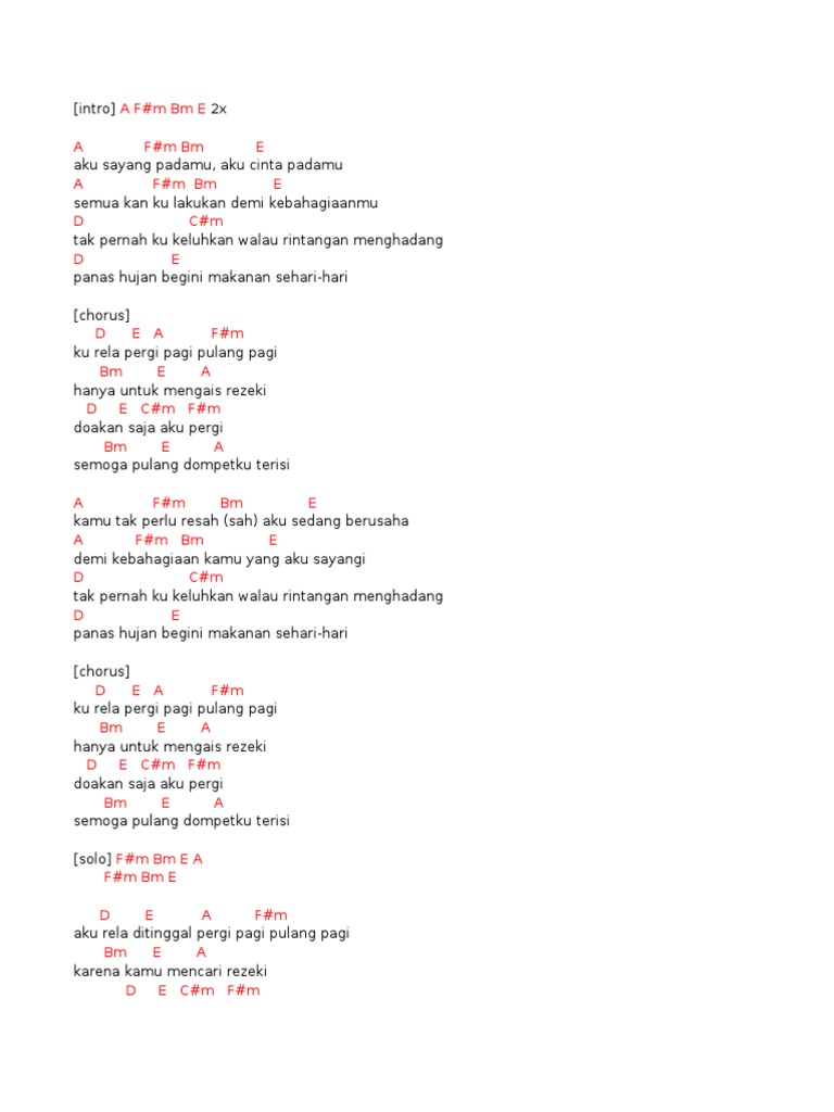 Chord Pergi Pagi Pulang Pagi aku sayang padamu aku cinta padamu semua kan ku lakukan ku rela pergi pagi pulang pagi … | Kunci ukulele, Kunci gitar, Kunci nada gitar