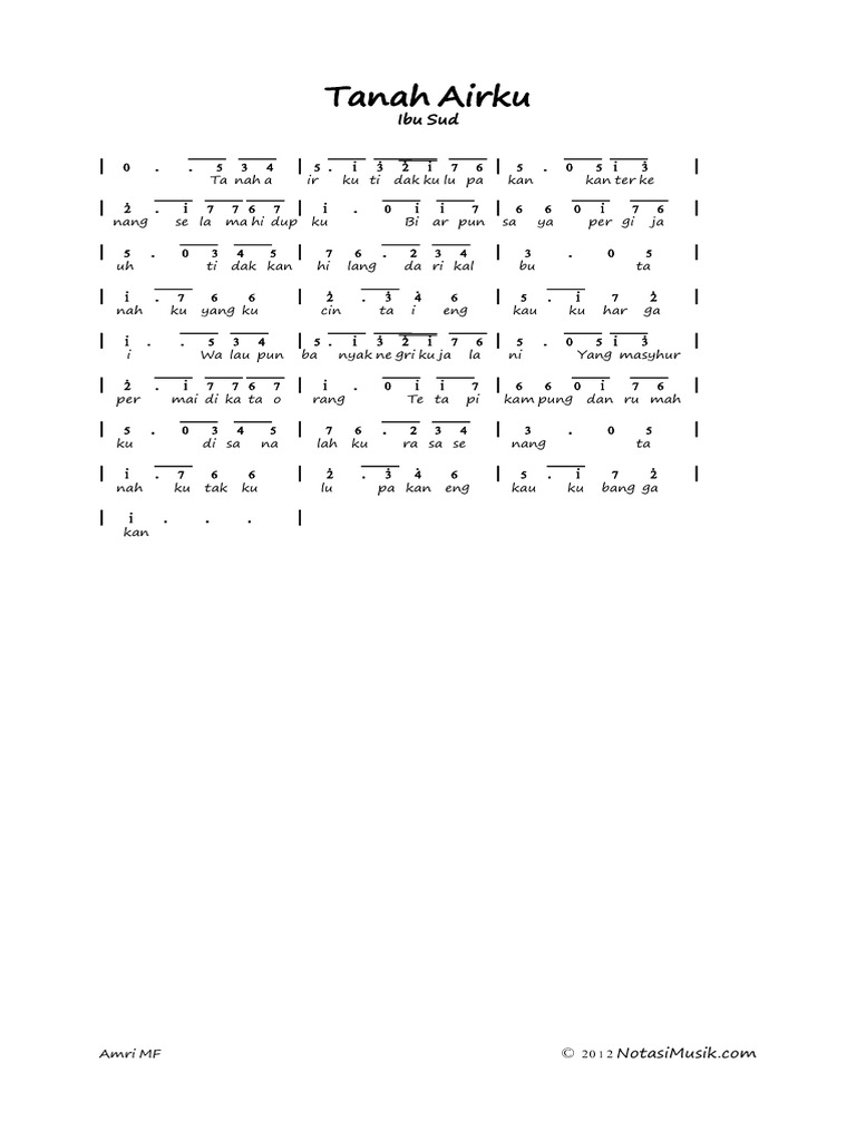 Gambar Not Angka Lagu Tanah Airku – NotAngkaLagu.Info – Kumpulan …