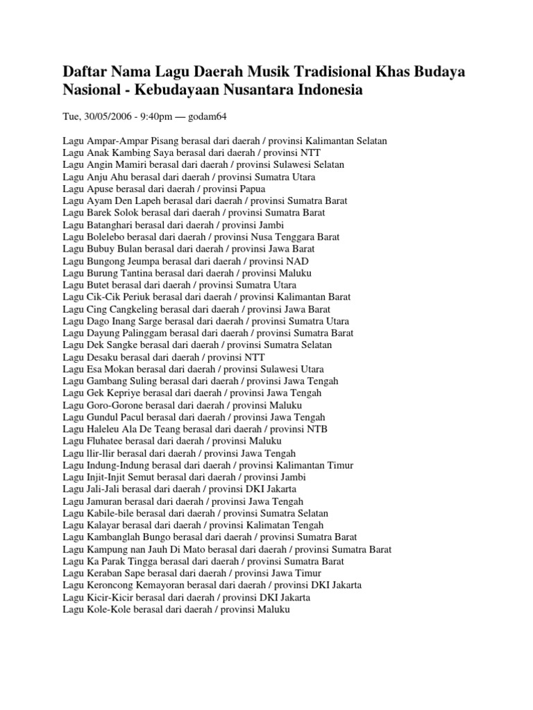 Kumpulan Lagu Daerah di Indonesia dan Penciptanya - Page 2 of 4 …