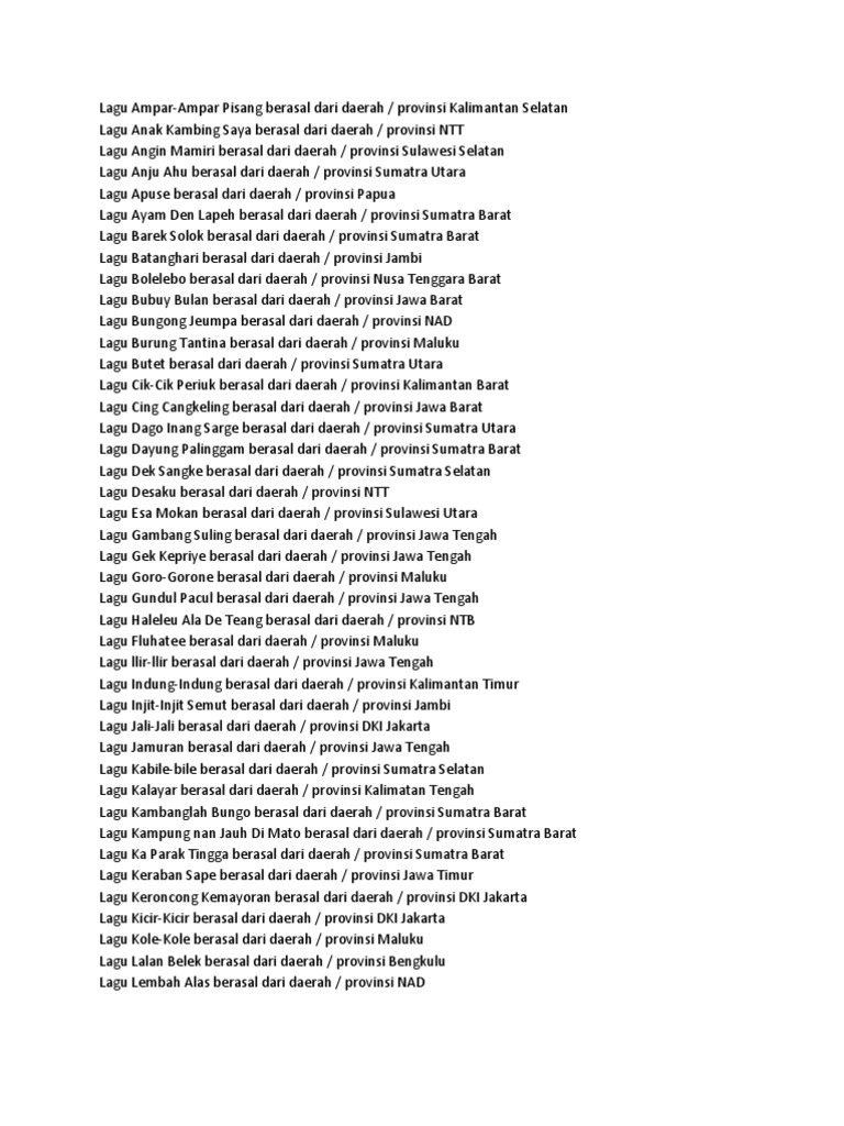 KUMPULAN LAGU DAERAH DAN ASALNYA