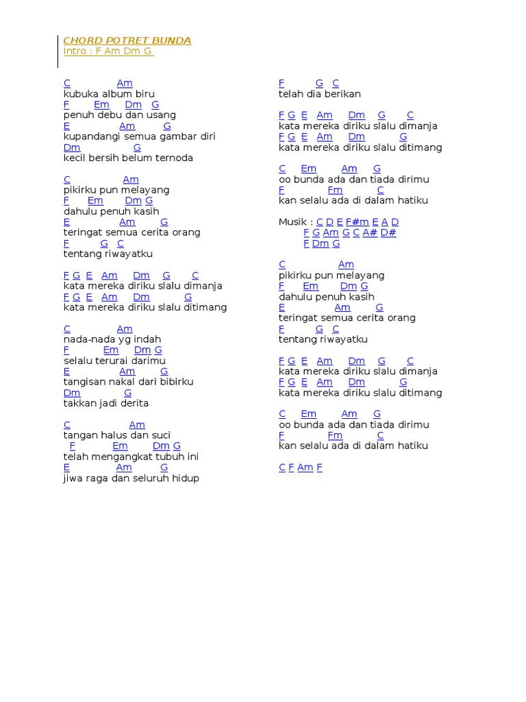 Chord Potret Bunda - Chord Gitar Indonesia - Kumpulan Kunci Gitar …