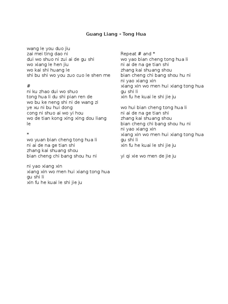 Tong hua 童话 Michael Wong Wang Guang Liang 王光良 Mandarin Pinyin …