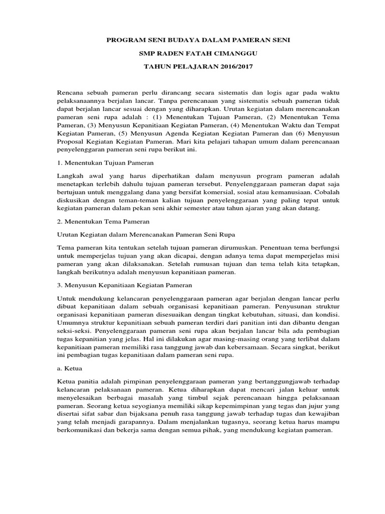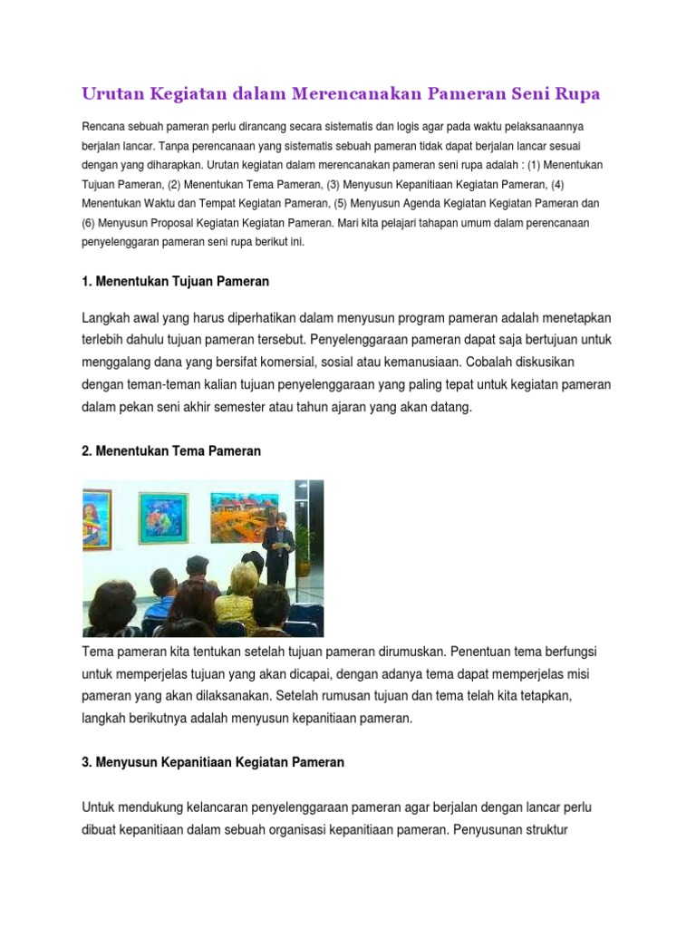 DOC) Urutan Kegiatan dalam Merencanakan Pameran Seni Rupa | yuli …