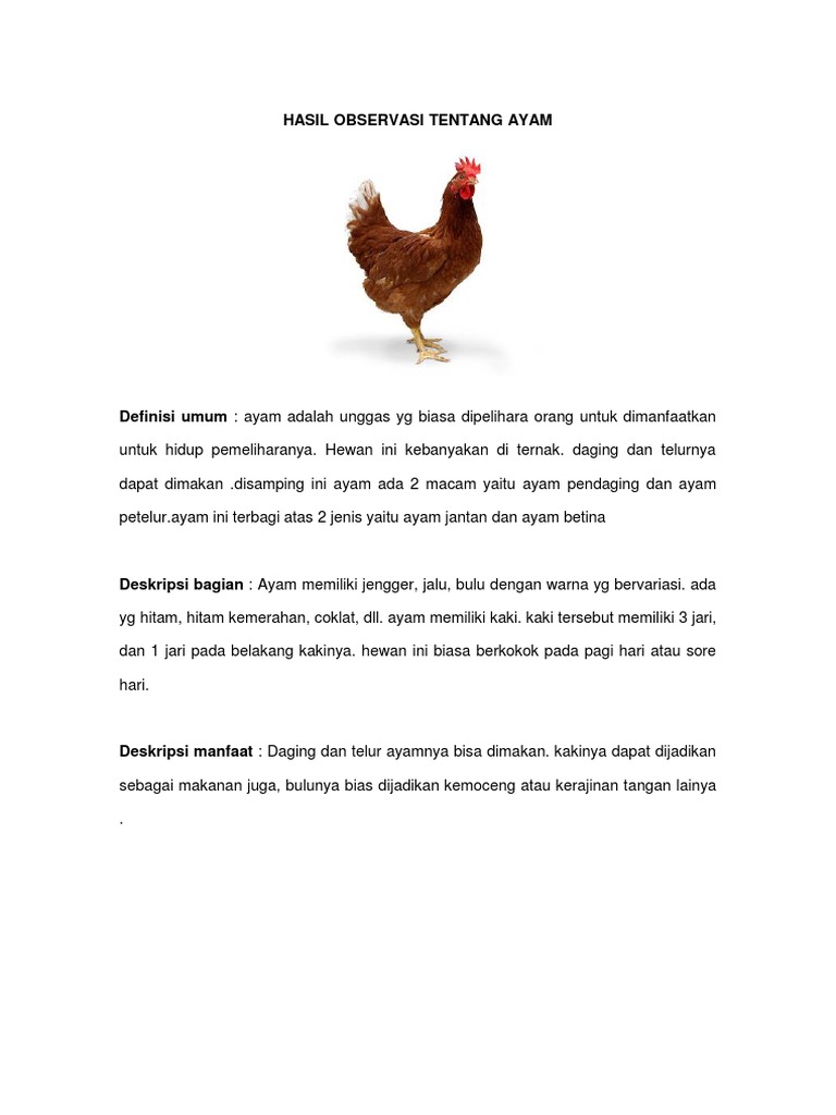 DOC) laporan observasi hewan peliharaan ayam | Palupi Sekar Dewanti - Academia.edu