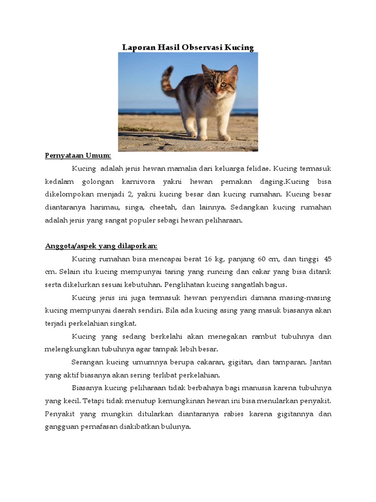 Contoh Laporan Hasil Observasi Hewan Peliharaan Kucing.docx - Contoh Laporan Hasil Observasi Hewan Peliharaan Kucing Kucing adalah jenis hewan mamalia | Course Hero