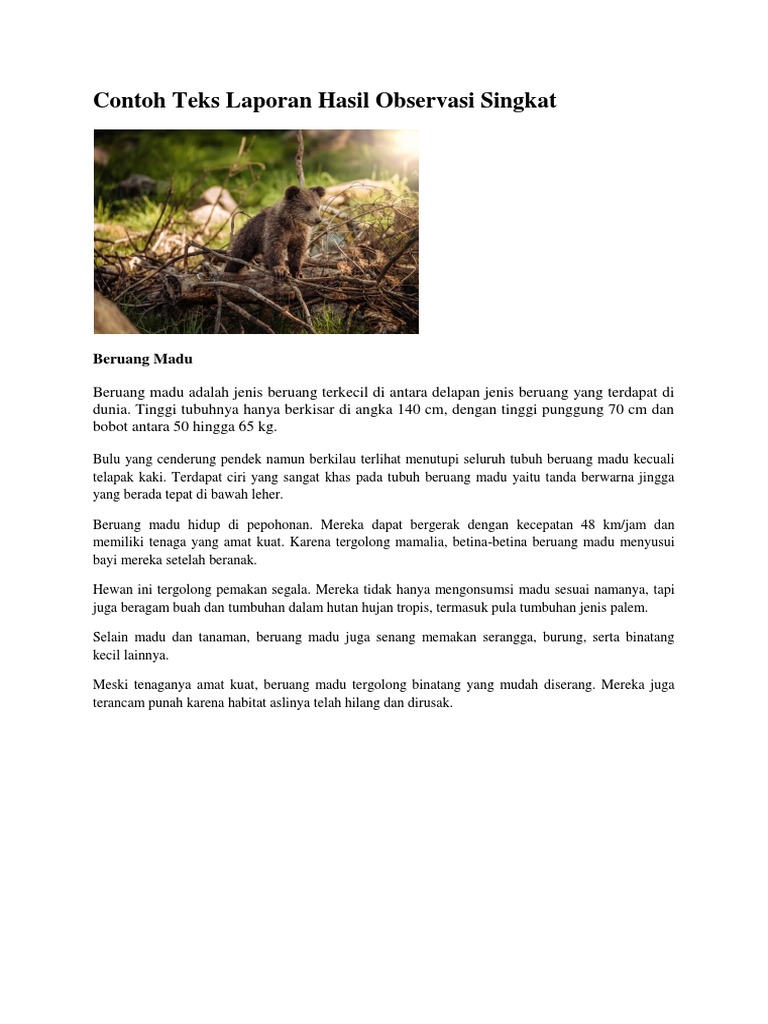 Contoh Teks Laporan Hasil Observasi Tentang Binatang - Berbagi Teks Penting