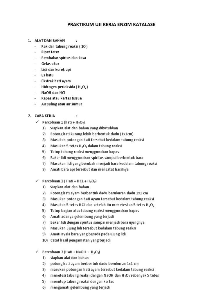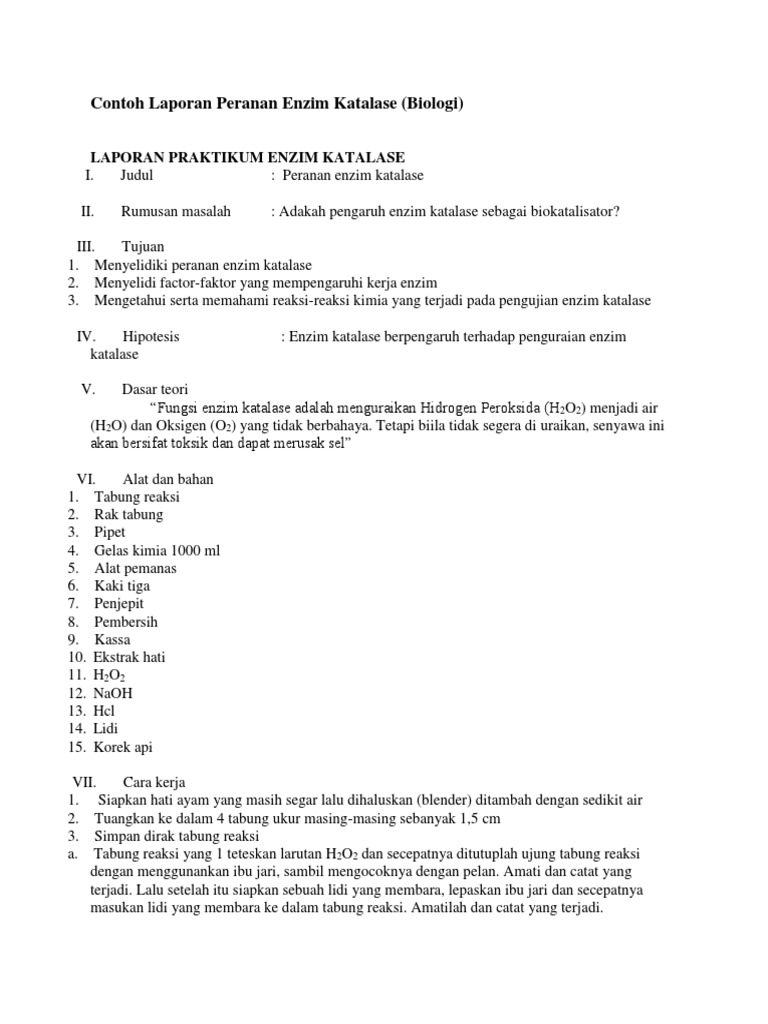 DOC) Laporan Praktikum Kerja Enzim Katalase | Kirana Puja …