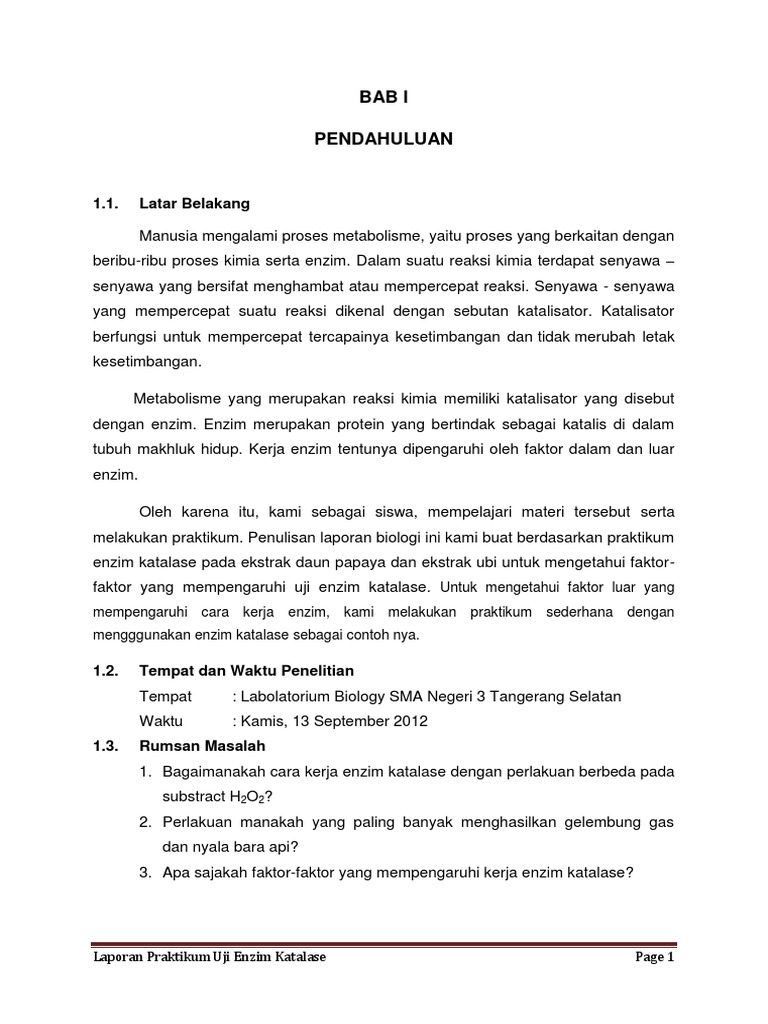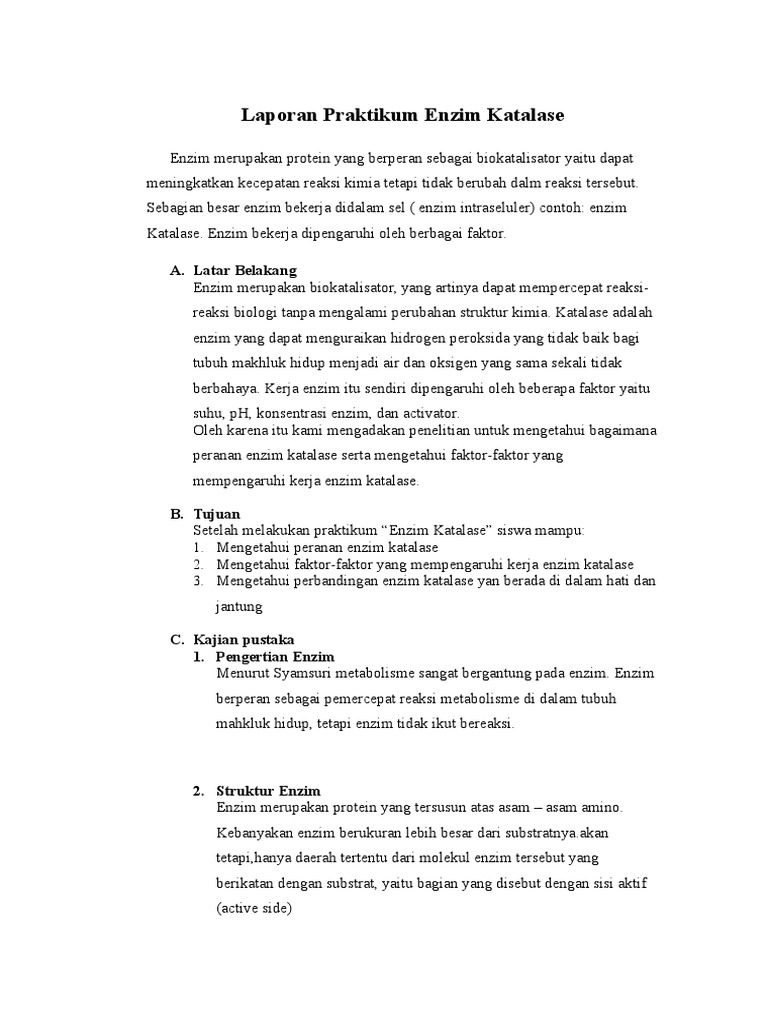 LAPORAN PRAKTIKUM UJI ENZIM KATALASE - PDF Free Download