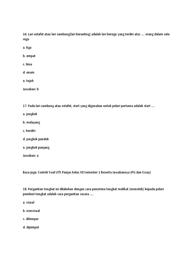 Lari estafet atau lari sambung adalah merupakan nomor beregu yang …