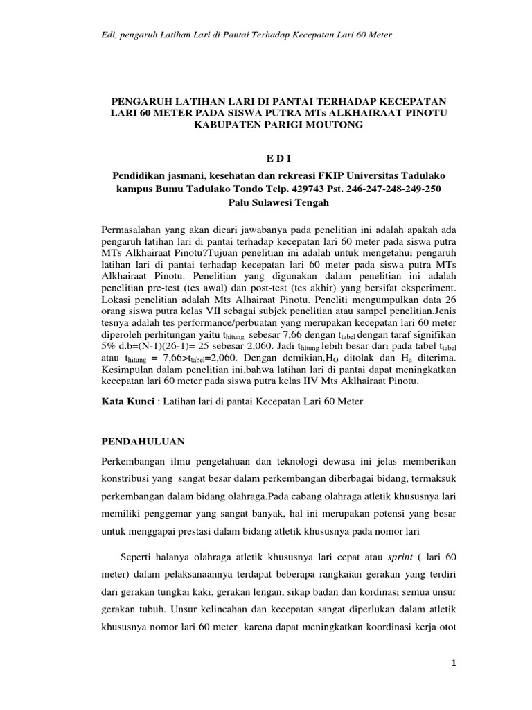 BAB I PENDAHULUAN. Sprint atau lari cepat merupakan salah satu …