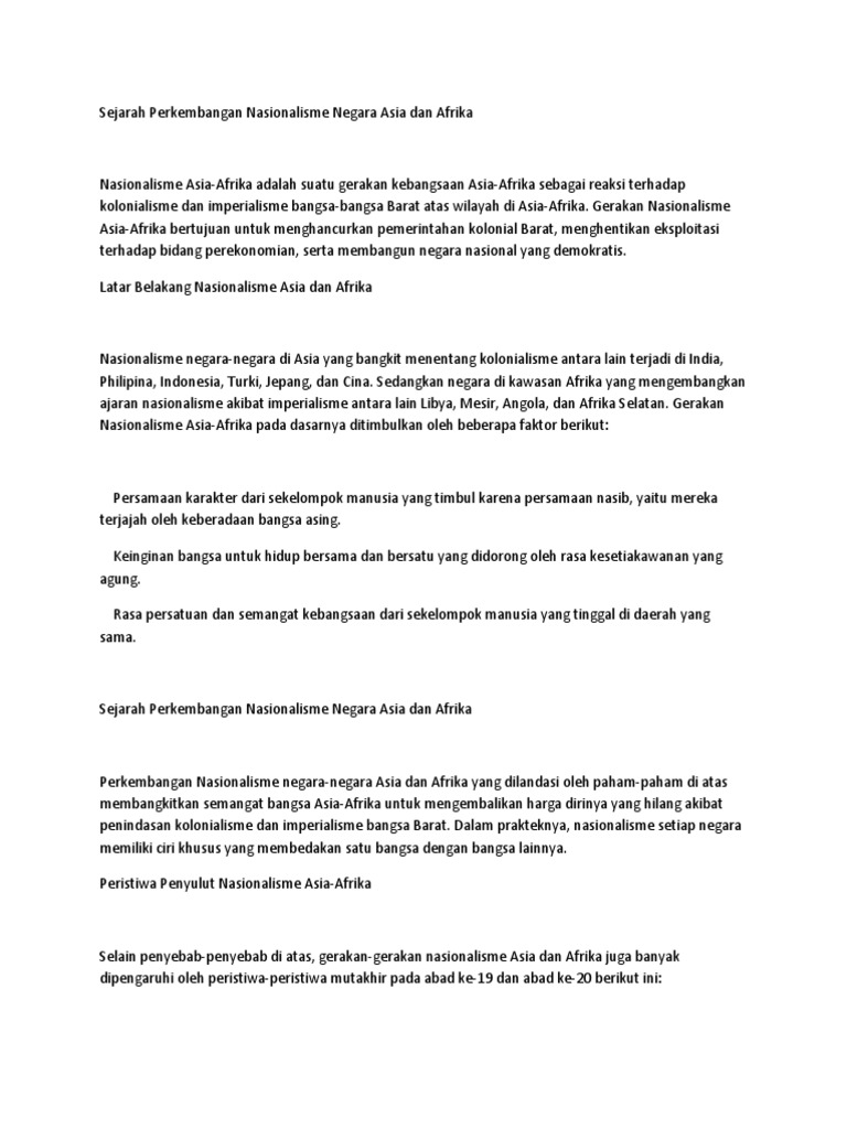 Sejarah Perkembangan Nasionalisme Negara Asia Dan Afrika