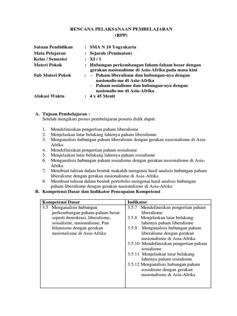 DOC) RPP LATAR BELAKANG MUNCULNYA NASIONALISME INDONESIA - Kelas VIII - Erwin Tejasomantri | Erwin Tejasomantri - Academia.edu
