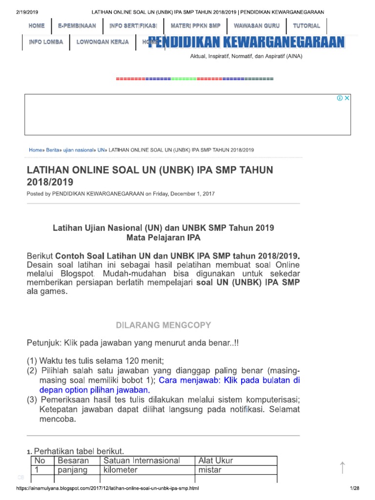 Latihan Online Soal Un Unbk Ipa Smp Tahun 2018ejr- .2019 (SMA IPA …